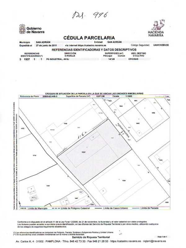 Alquiler de NAVE en San Adrian de 1800 m² con un precio de 4100 EUR. construido en el año 2002.